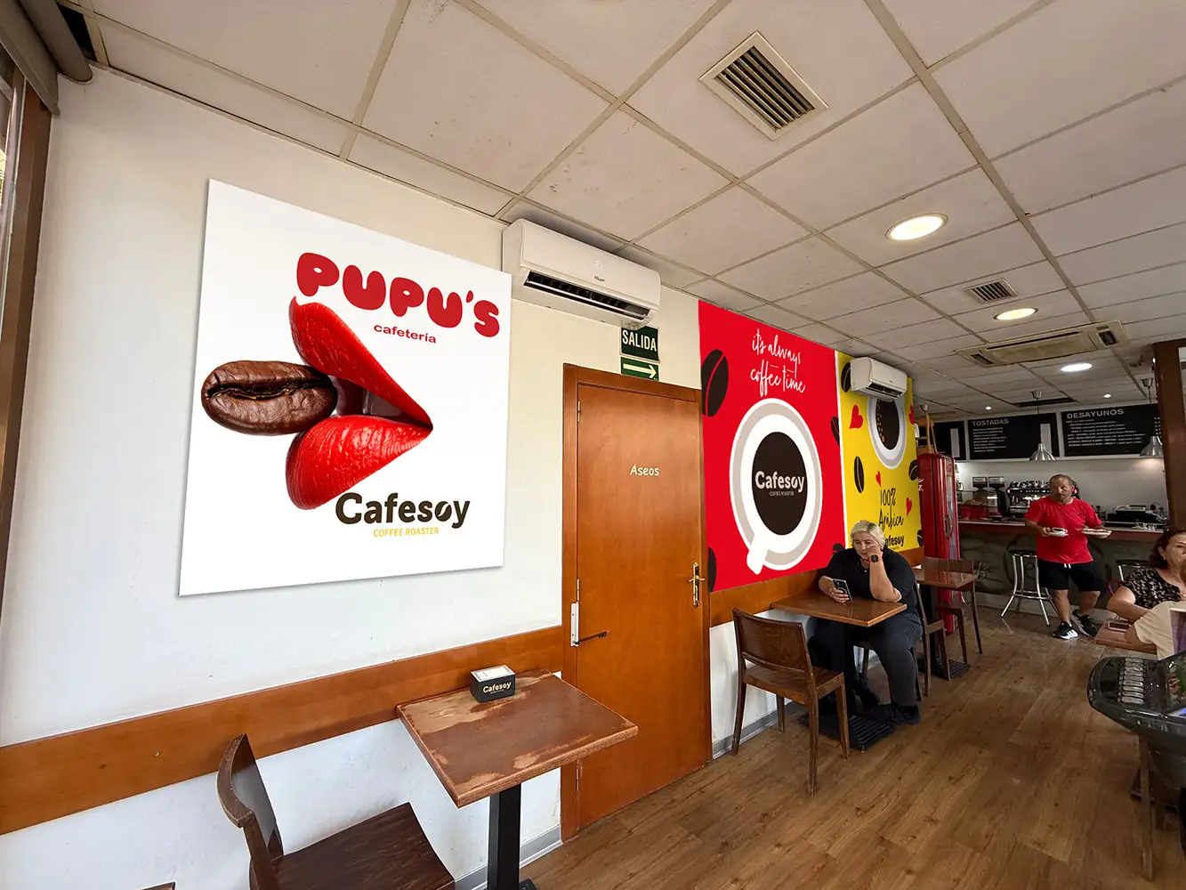Cada pieza ha sido cuidadosamente diseñada para potenciar la imagen corporativa del negocio y transmitir de forma clara y coherente su esencia, creando un ambiente visual único que refleja la personalidad de Cafetería PUPU’S.